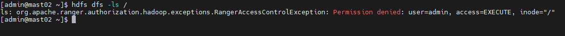 # hadoop 유저 이외에 모든 엑세스를 거부하였으므로 통과되지않습니다.