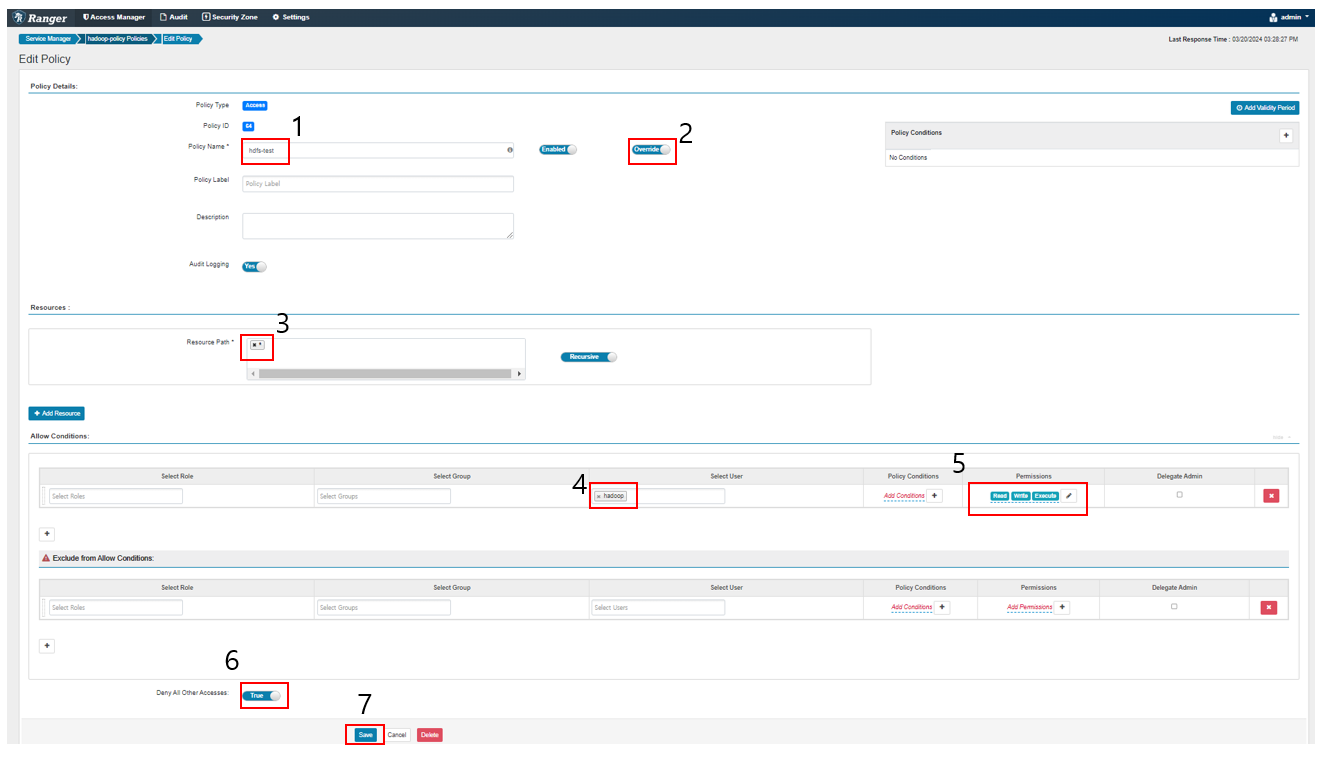 만약 admin이라는 유저도 HDFS에 접근 가능하게끔하려면, 7. policy 생성 내