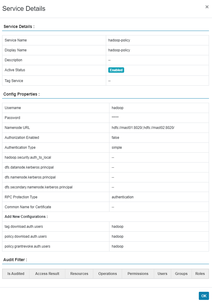HDFS와 ranger가 설치되어있음을 가정합니다.