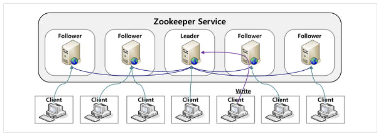 - 클라이언트는 모든 주키퍼 서버에서 읽을 수 있고, Leader를 통해 쓰기가 가능