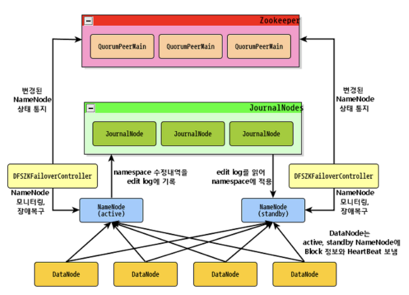 고가용성 HDFS 주요 구성(Hadoop Distributed FileSystem High Availability):