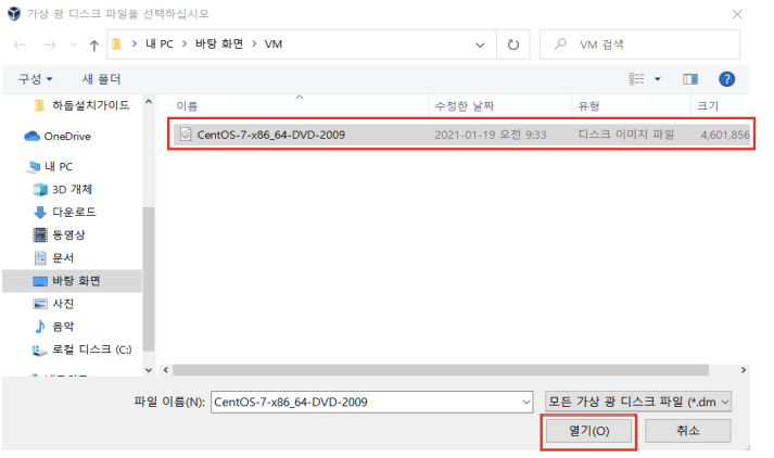 다운로드 받았던 디스크 이미지 파일 등록