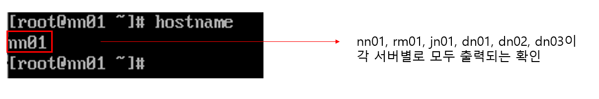 각 서버 실행 후 hostname 설정