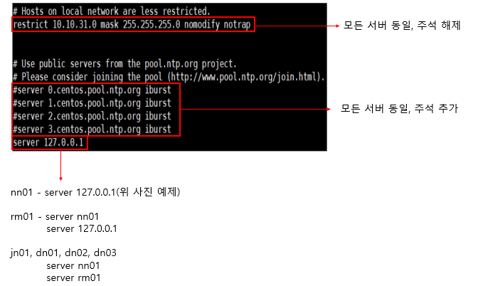 restrict 10.10.31.0 mask 255.255.0.0 nomodify notrap - 주석 해제
