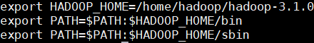 export HADOOP_HOME=/home/hadoop/hadoop-3.1.0