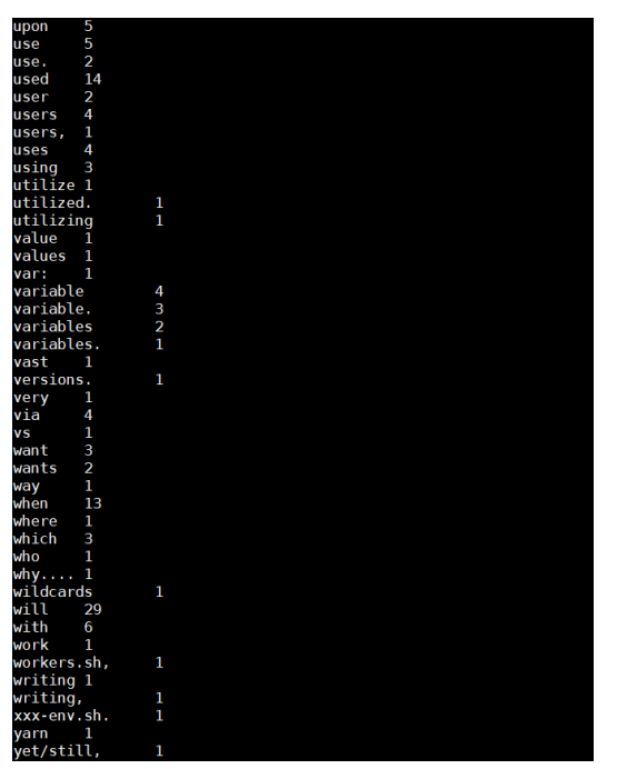 # wordcount 결과 확인 (파일의 단어 갯수)