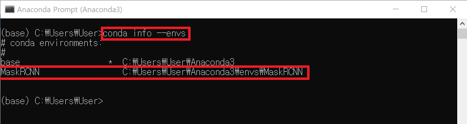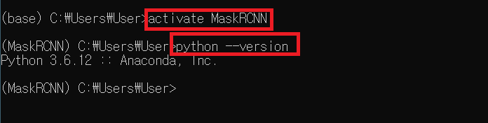 생성된 MaskRCNN가상환경으로 접속합니다.