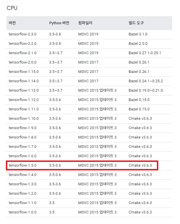 이번 시간에는 tensorflow-1.5.0으로 구축해보겠습니다.