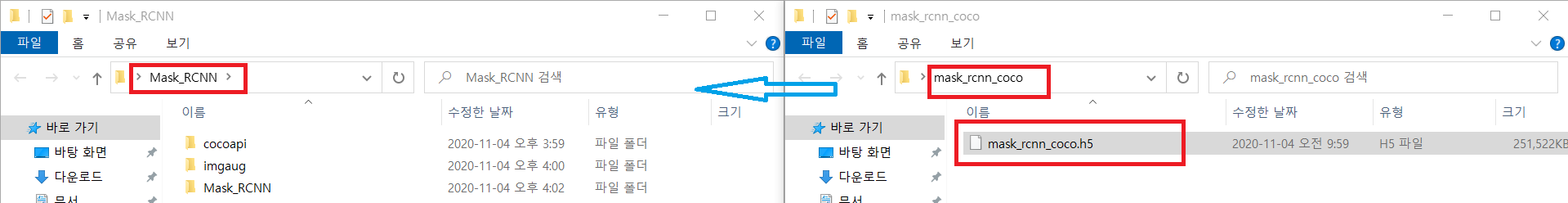 압축 해제한 mask_rcnn.coco폴더 내에 mask_rcnn_coco.h5파일을