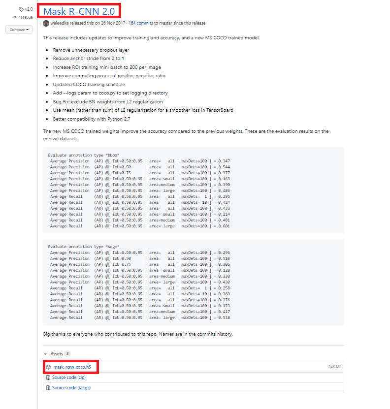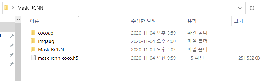 (중간쯤 Mask R-CNN 2.0에 위치한 폴더를 다운로드 받았습니다.)