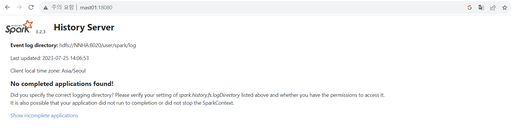 4. Spark log 폴더 생성