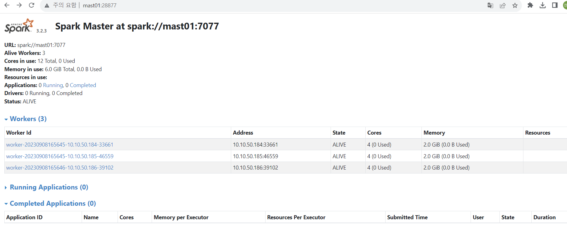 # mast01서버에서 실행, master, workers