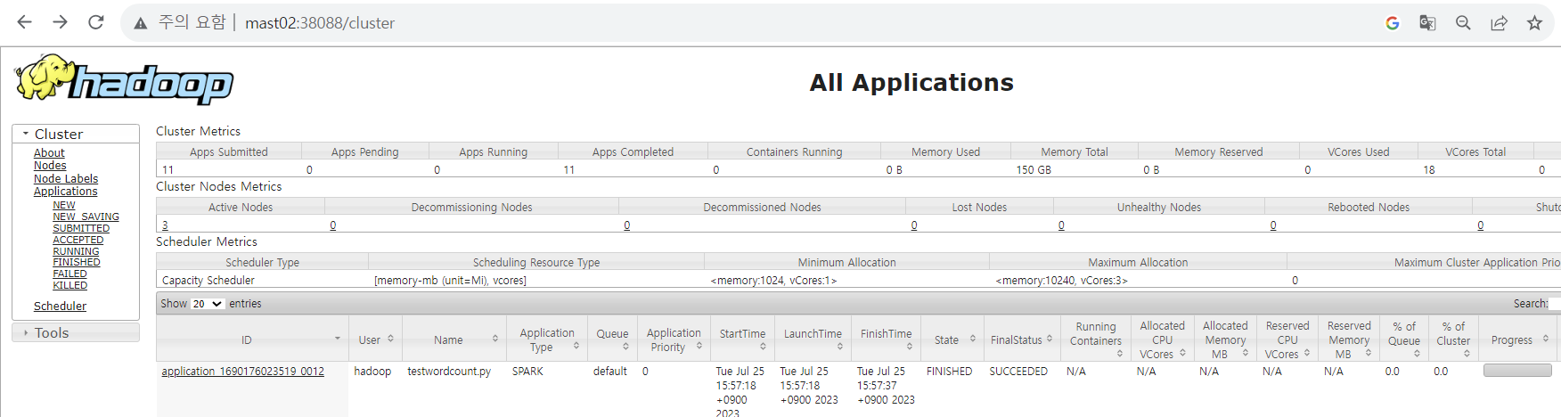 spark-submit --master yarn --deploy-mode cluster /opt/apps/spark-3.2.3/testwordcount.py