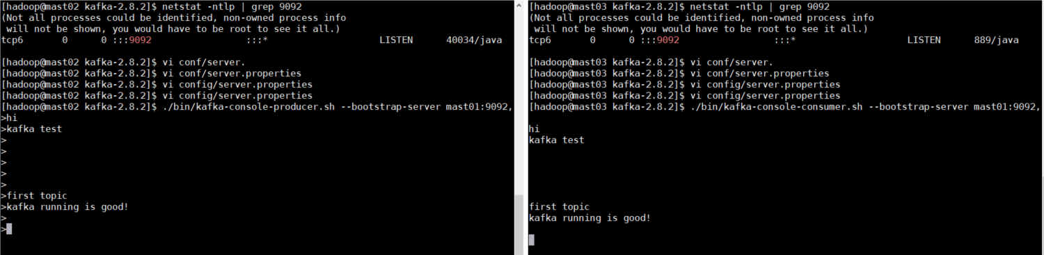 mast02서버의 프로듀서에서 메시지 입력 시 실시간으로 mast02서버의 컨슈머에서 확인