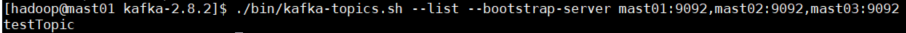 ./bin/kafka-topics.sh --list --bootstrap-server mast01:9092,mast02:9092,mast03:9092