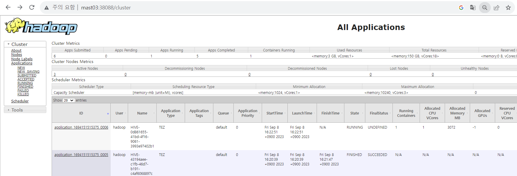 mast02서버에 hive가 실행중이고, tez 빌드가 마무리되었음을 가정합니다.