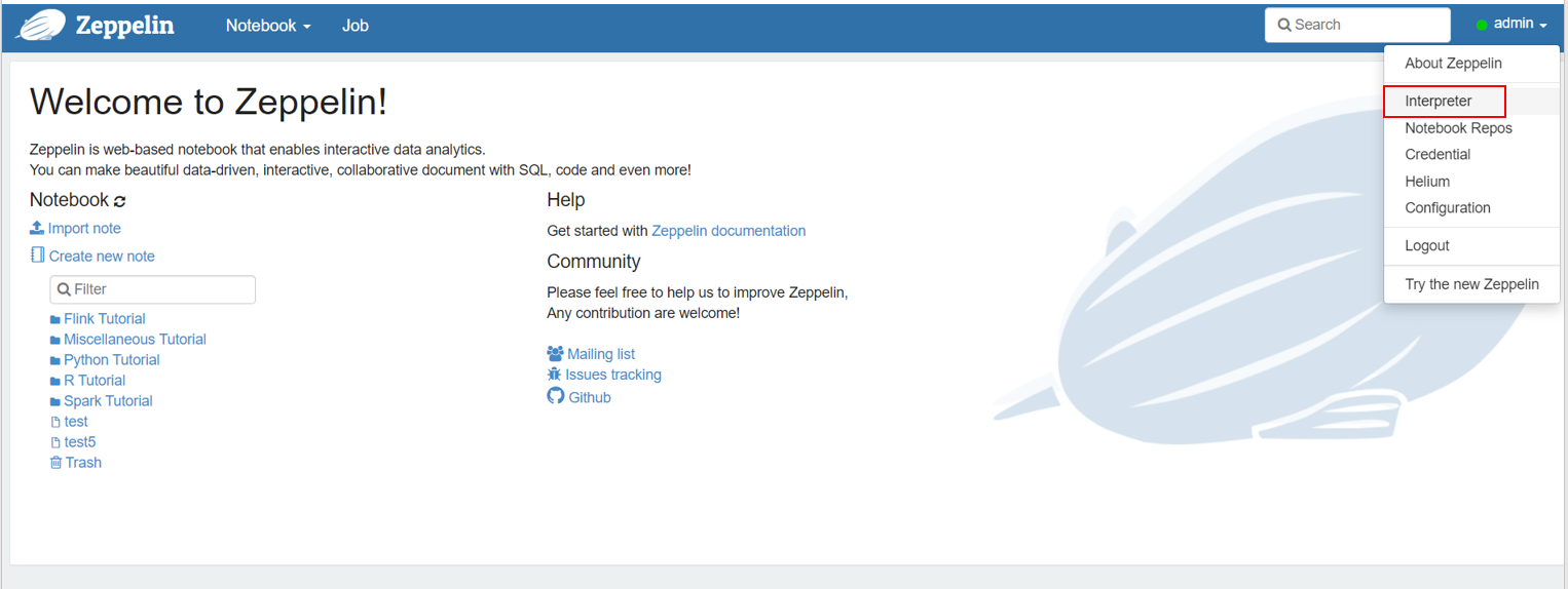 1. zeppelin 인터프리터 생성