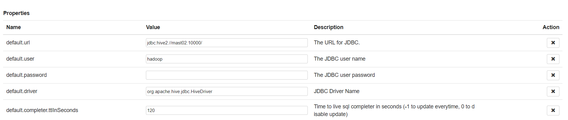 | default.driver | org.apache.hive.jdbc.HiveDriver |