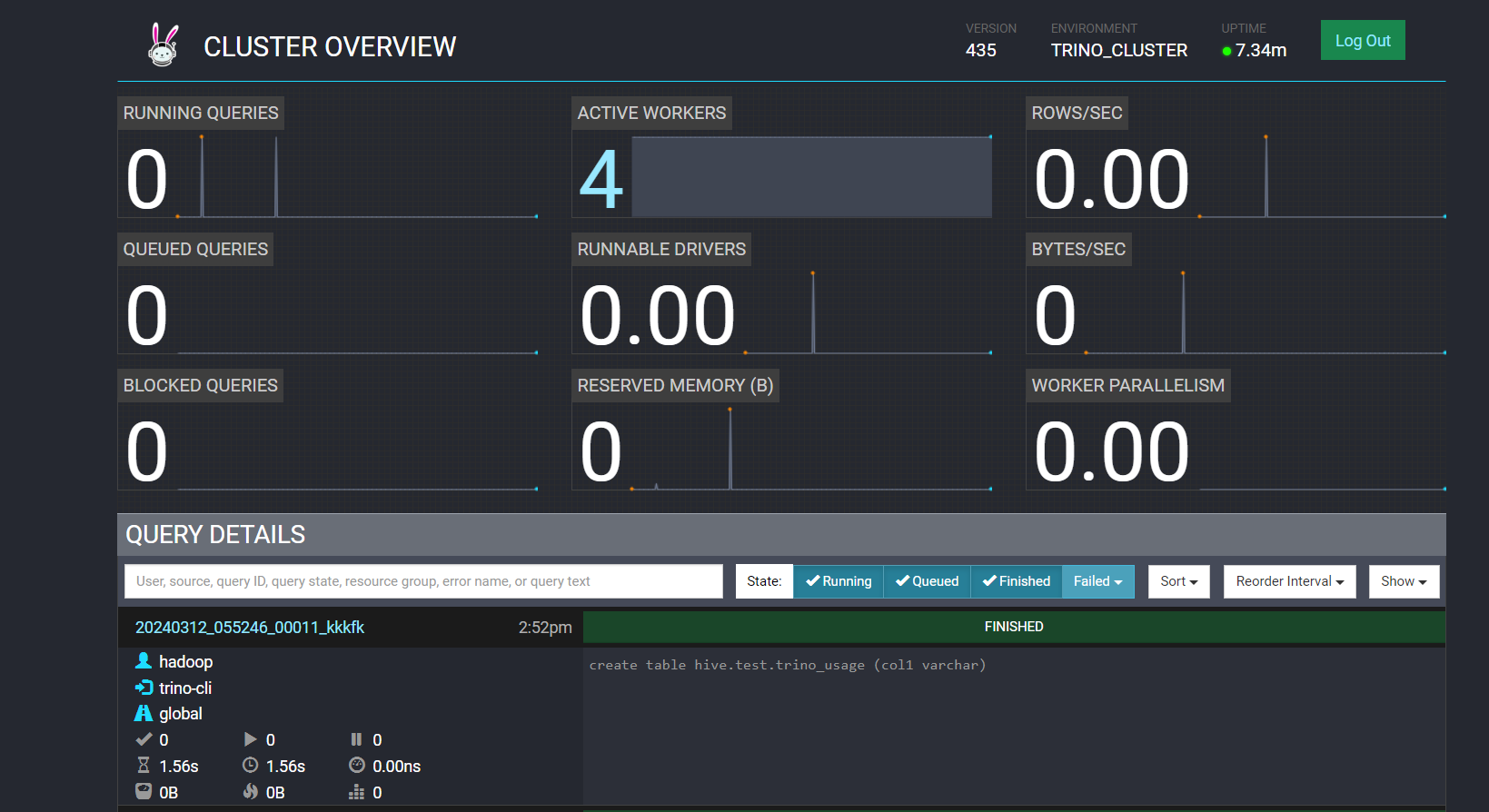 이전 포스팅에 이어 Trino 클러스터에 Hive catalog를 연동 후 trino cli를 통해 확인해보겠습니다.