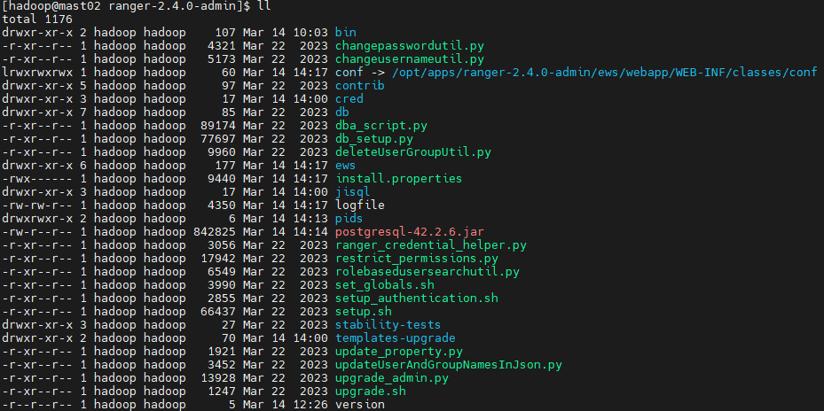 chown -R hadoop:hadoop ./ranger-2.4.0-admin/