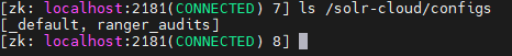 혹은 zookeeper cli를 통해 확인할 수 있습니다. /opt/apps/zookeeper-3.5.10/bin/zkCli.sh -> ls /solr-cloud/configs