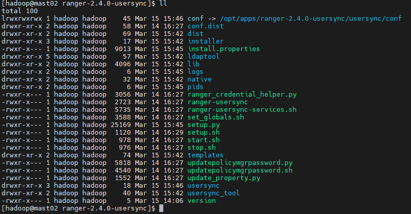 chown -R hadoop:hadoop ranger-2.4.0-usersync/